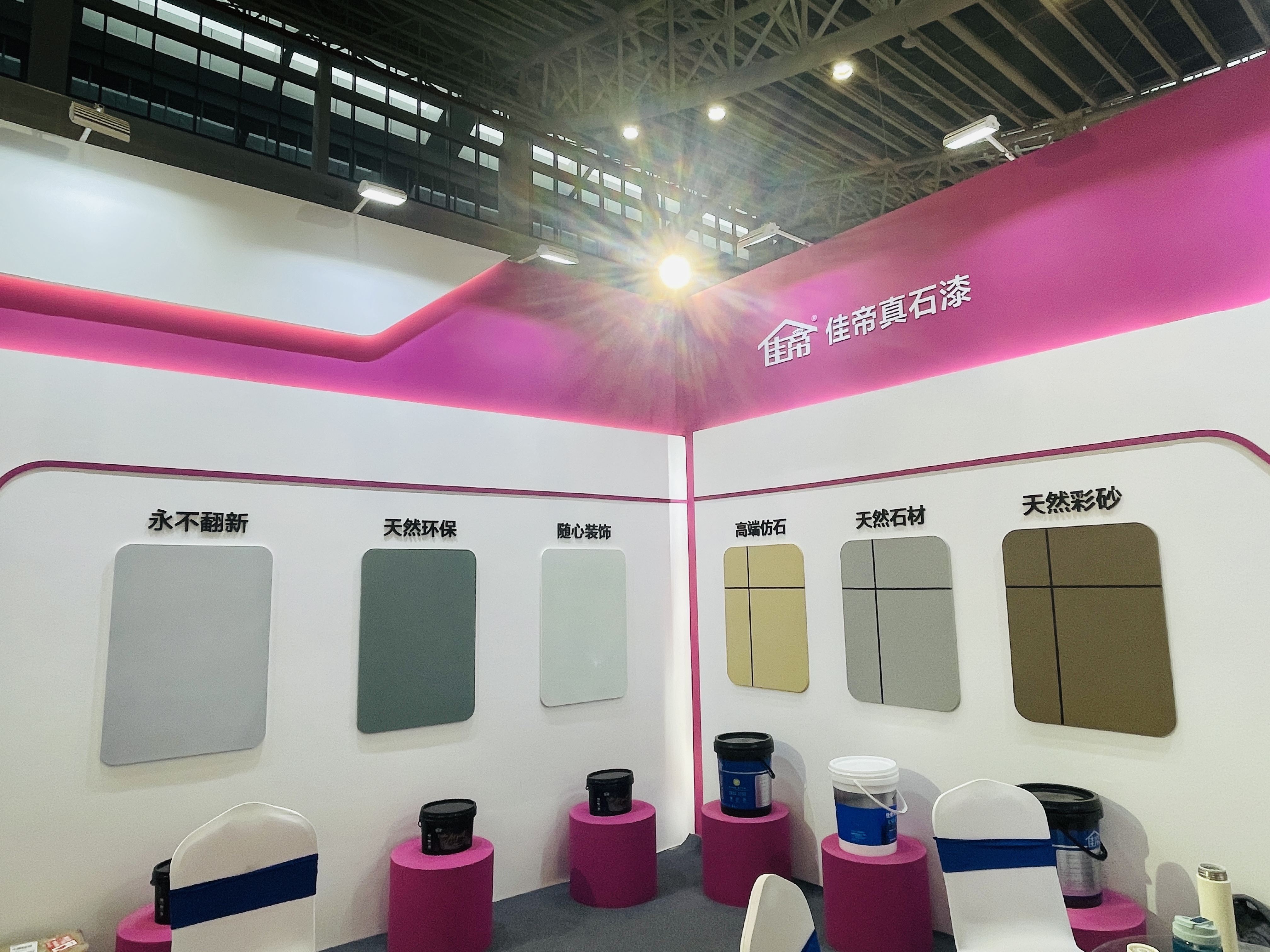 本次展示产品内容——真石漆、仿石漆【水包砂】、石膏基自流平、艺术漆系列等产品的展示,以多元化产品满足消费者对于不同装饰风格的需求让居家空间熠熠生辉,更为消费者提供健康绿色环保的家居空间。